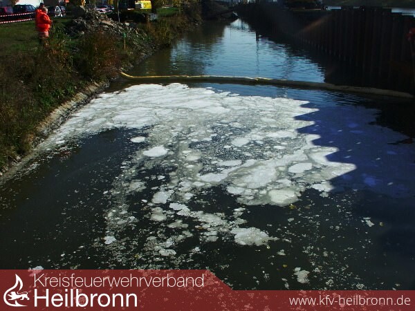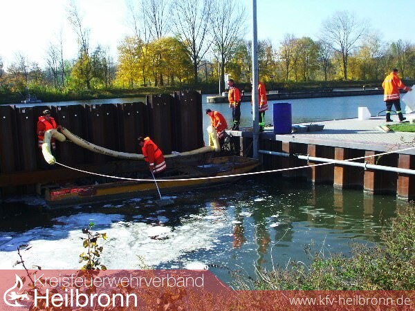 Im Oberwasser der Schleuße Kochendorf wird im Neckarkanal, oberhalb dem Betriebshof der Wasser- und Schifffahrtsverwaltung, eine neue Spundwand eingebaut. Hierbei wurden, während ein Arbeitsgerät vom Wasser aus die Spundwanddielen mit einem erheblichen Lärm einschlägt, mit einem Bagger vom Ufer aus Grabarbeiten unter Wasser durchgeführt. Hierbei muss der Baggerarm gegen ein Metallstück unter Wasser gestoßen sein, wodurch die am Ausleger befestigte Hydraulikleitung beschädigt wurde. Es traten ca. 50 ltr. Hydrauliköl aus, welches sich auf dem Wasser ausbreitete.