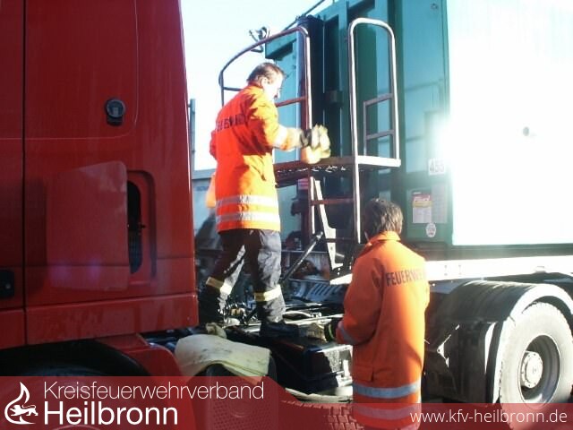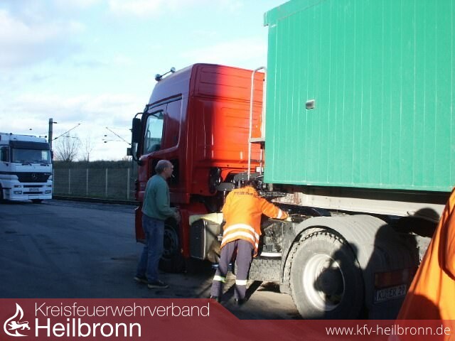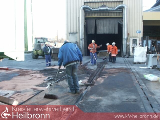 Der LKW wurde vor Ort mit Ölfließtüchern grob gereinigt und dann im Werk einer Waschanlage mit Ölabscheider zugeführt. Das ausgelaufene Öl wurde mit Ölbindemittel aufgenommen.
