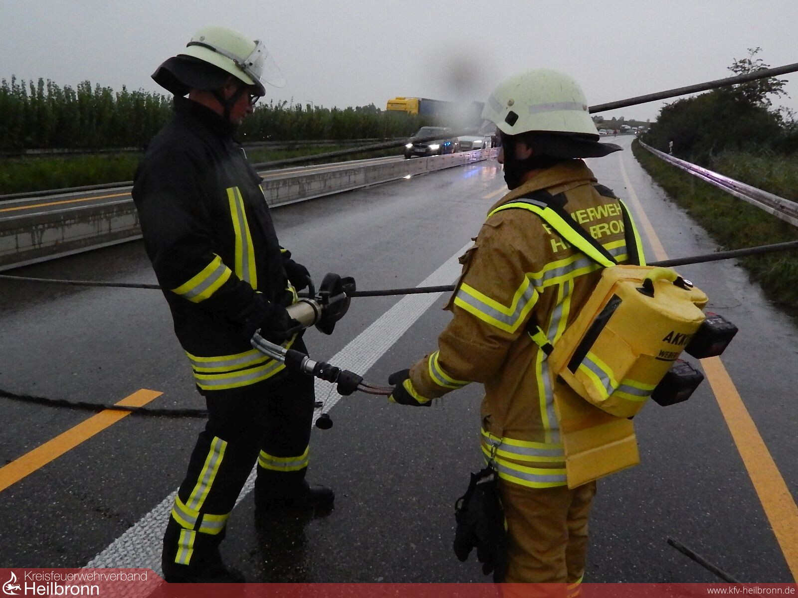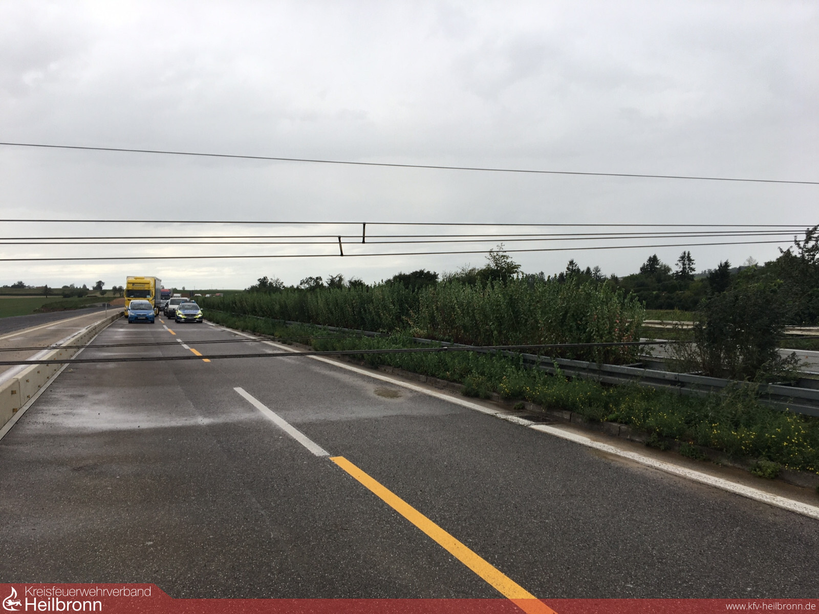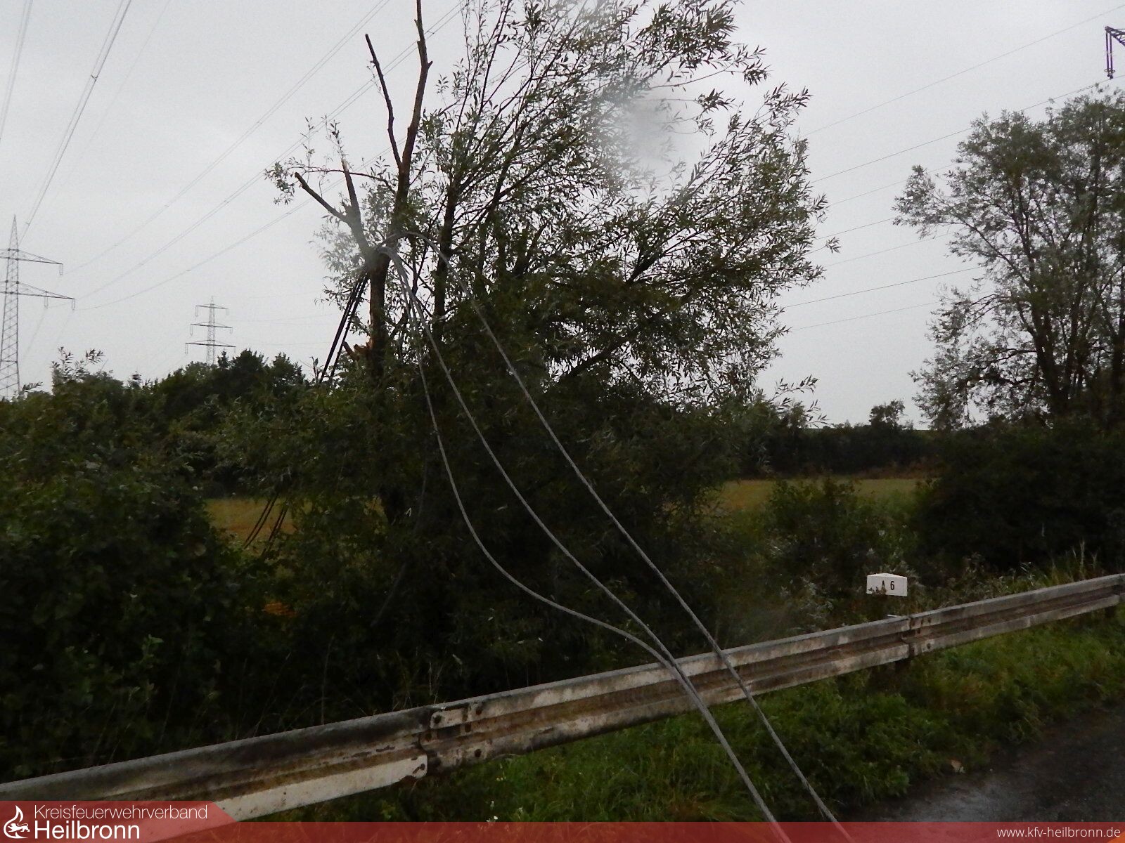 Auf der Autobahn 6 bei Heilbronn-Biberach hatte der Orkan sogar einen Hochspannungsmasten umgeknickt, so dass die Starkstromleitungen in Augenhöhe über beide Fahrbahnen hingen. Hierdurch kam es zu einem Stau auf einer Länge von rund 14 Kilometern. Nach zahlreichen Telefonaten konnte die Integrierte Leitstelle schließlich die für diese Versorgungstrasse zuständige Stelle erreichen. Die angeforderten Starkstromelektriker machten sich mit Unterstützung der Feuerwehr umgehend an Arbeit die Hindernisse zu beseitigen.