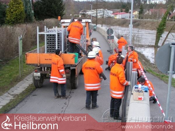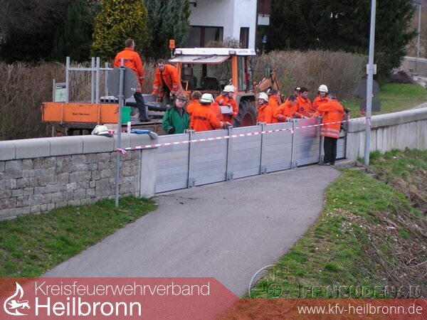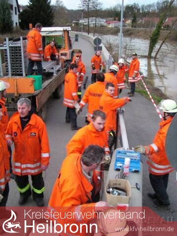Am Abend entschloss man sich dazu, den mobilen Hochwasserschutz in Herbolzheim zu installieren - das übernahmen die Besatzungen vom GW und LF10/6 aus Herbolzheim. Zum Schluss musste nochmals der Bauhof zur Reinigung eines Gehwegs unterstützt werden.