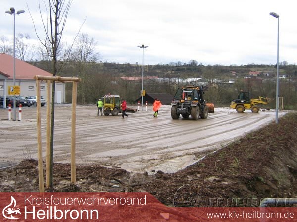 Die Abteilung Herbolzheim übernahm zunächst in Alleinarbeit die "Groß-Einsatzstelle" Siglinger Straße / Lebensmittelmarkt, dessen Parkplatz komplett verschlammt war.