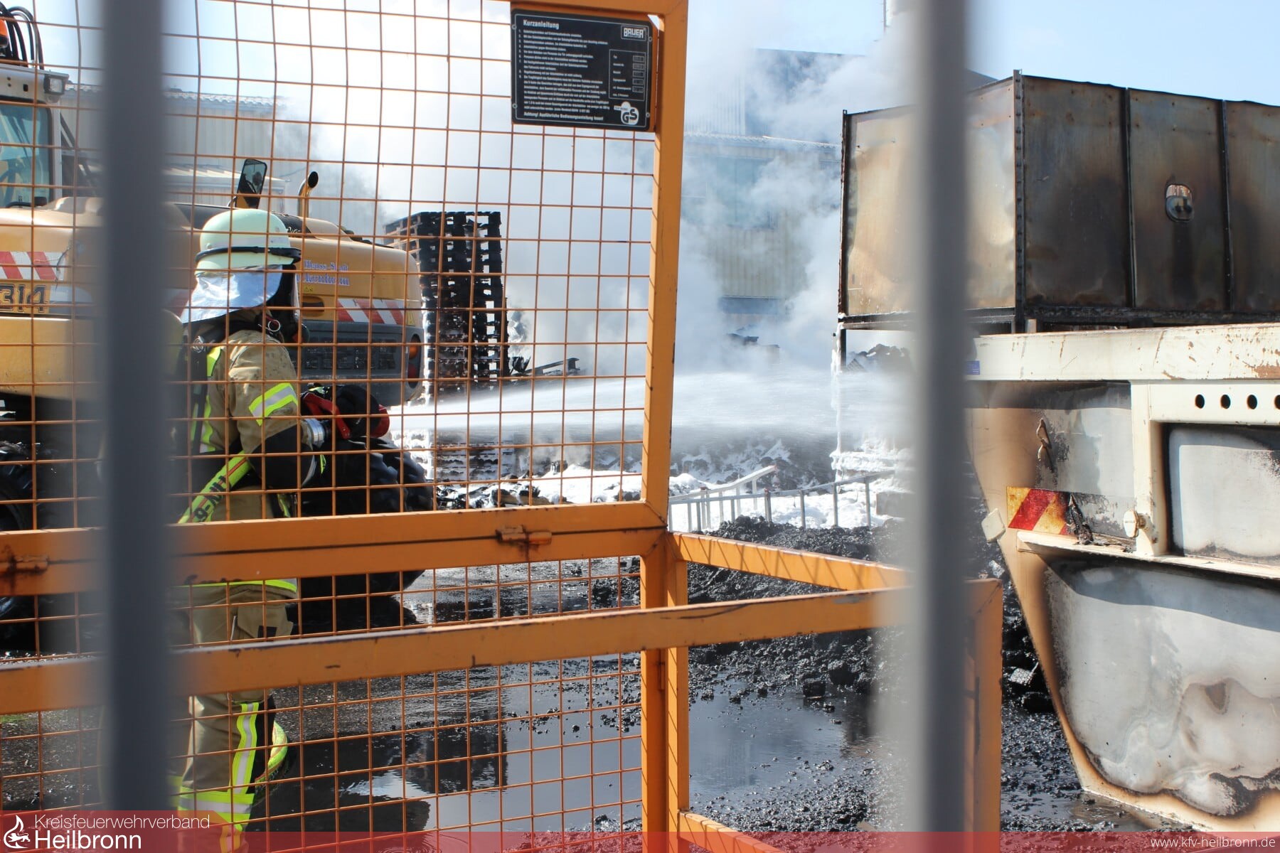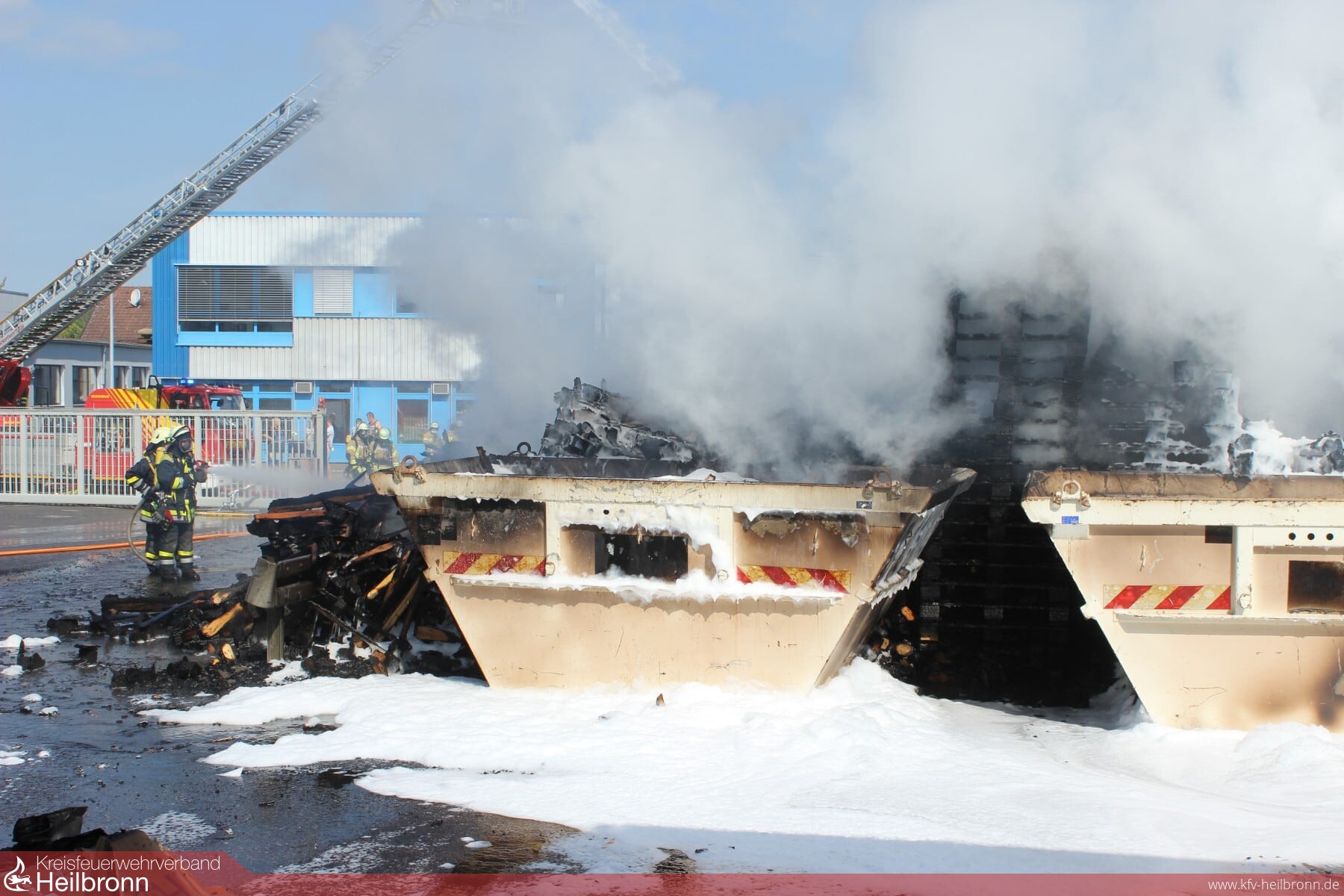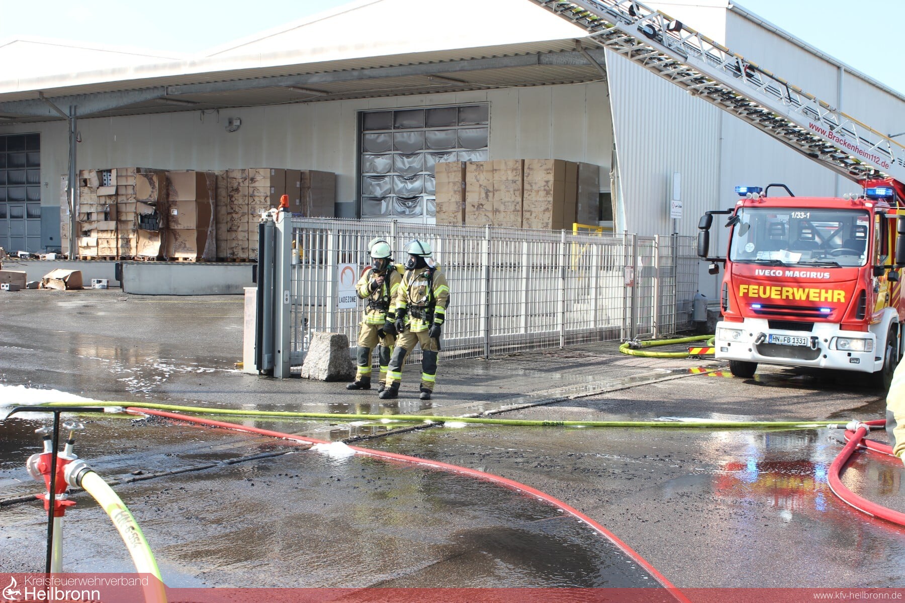 Um der betroffenen Firma eine rasche Produktionswiederaufnahme zu ermöglichen wurde in weiteren Einsatzverlauf der Abrollbehälter MGV der Feuerwehr Heilbronn nachgefordert. Mit diesem wurden die Hallen endgültig vom Brandrauch befreit.