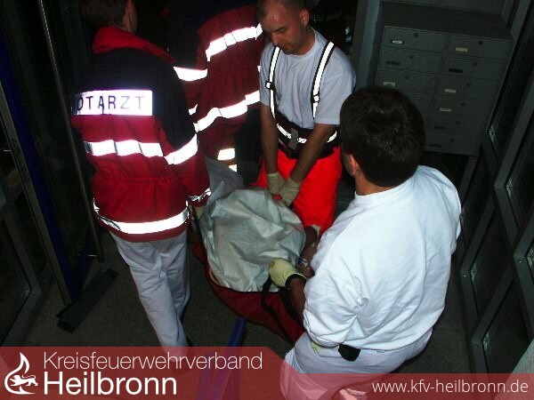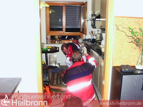 Die Person wurde in Küche nicht ansprechbar auf dem Fußboden liegend gefunden und vom Notarzt und Rettungsdienst übernommen.