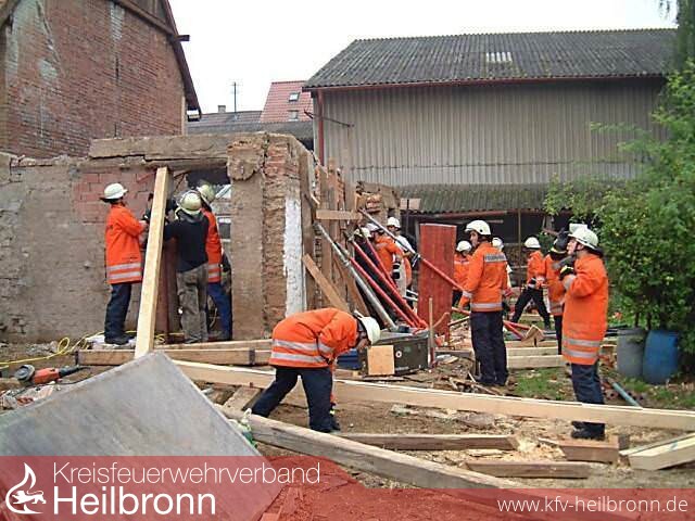 Am 30.8.2002 wurden die Feuerwehren Schwaigern und Heilbronn um 9.23 Uhr zu einem Bauunfall in der Schwaigerner Lohmühlstrasse mit dem Einsatzstichwort: Person unter eingestürzter Betondecke alarmiert.