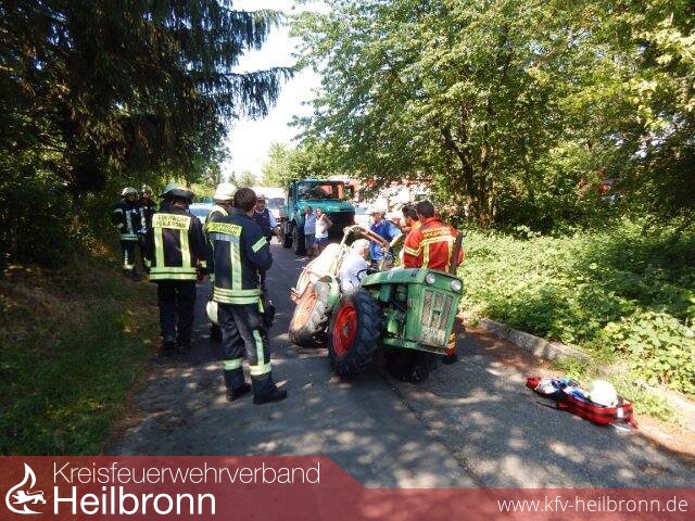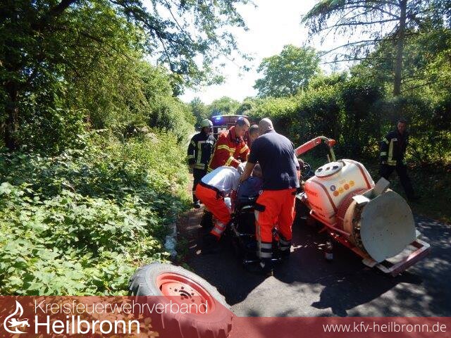 Die Feuerwehr wurde um 10.35 Uhr zum Gewann Stiftsberg angefordert. Laut Notruf an die Integrierte Leitstelle für Feuerwehr und Rettungsdienst, war ein Mann unter einem Traktor eingeklemmt worden.