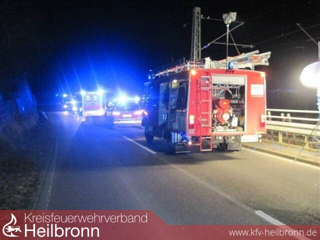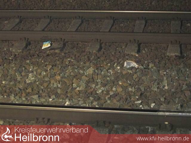 Vor Ort erfuhr die Mannschaft vom Lokführer, dass er eine Person zwischen den Gleisbetten laufen sah und dann einen dumpfen Schlag gehört habe. Ein Trupp des ersteintreffenden Fahrzeuges ging sofort zur Lageerkundung vor, während die übrigen Einsatzkräfte zur Landesstraße zwischen Herbolzheim und Neudenau geordert wurden.