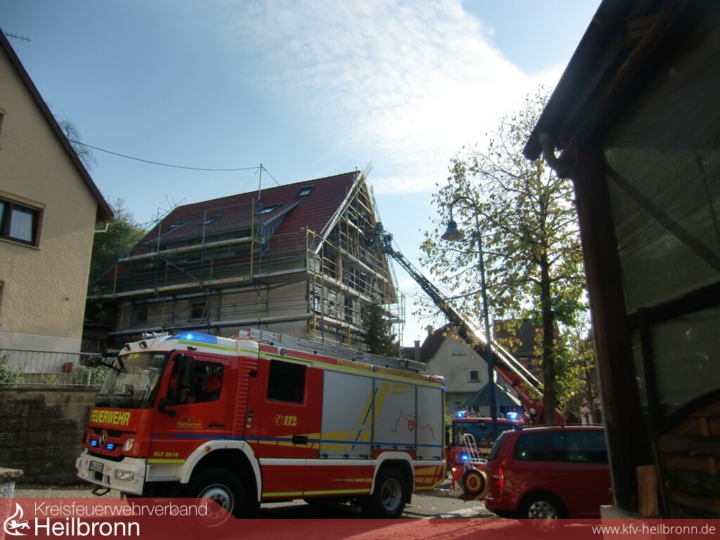 Die Feuerwehren Untergruppenbach und Heilbronn wurden in den Ortsteil Untergruppenbach alarmiert. Hier war es im Dachgeschoss eines im Umbau befindlichen Hauses zu einem Arbeitsunfall gekommen, bei dem eine Person schwer verletzt wurde.