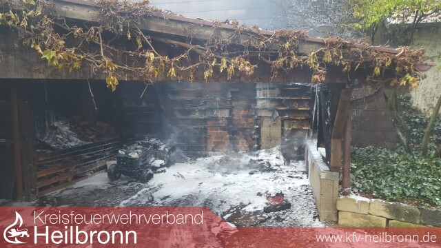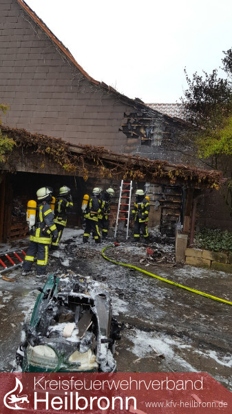 Vermutlich hat ein technischer Defekt dazu geführt, dass ein auf einem landwirtschaftlichen Aussiedlerhof zwischen Lauffen und Nordheim in einem Carport abgestellter PKW in Brand geraten und vollständig ausgebrannt ist. Vorbildlich haben die Bewohner des Aussiedlerhofes reagiert und beim Erkennen des Brandes sofort den Notruf gewählt und mit Feuerlöschern selber erste Löschversuche unternommen.