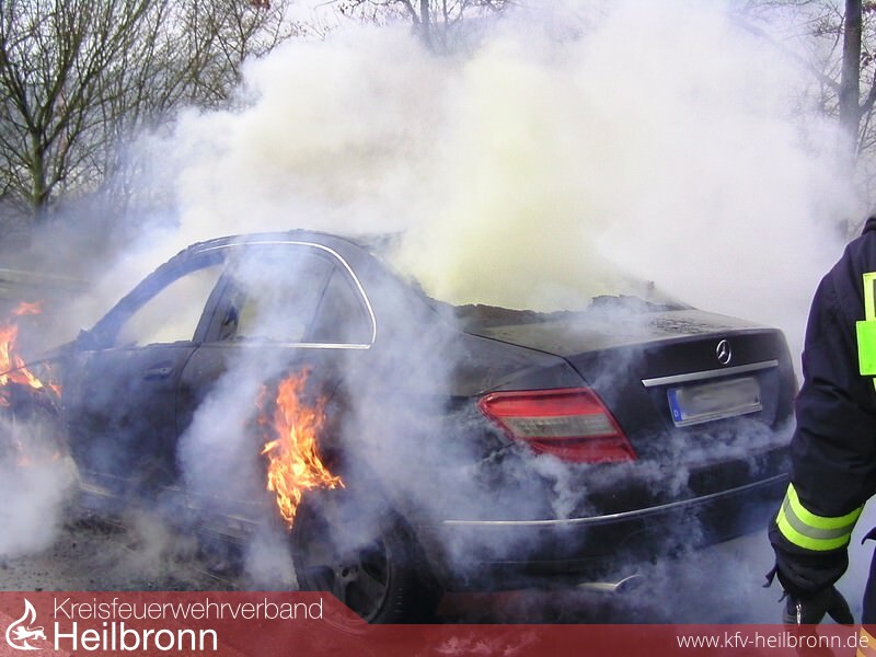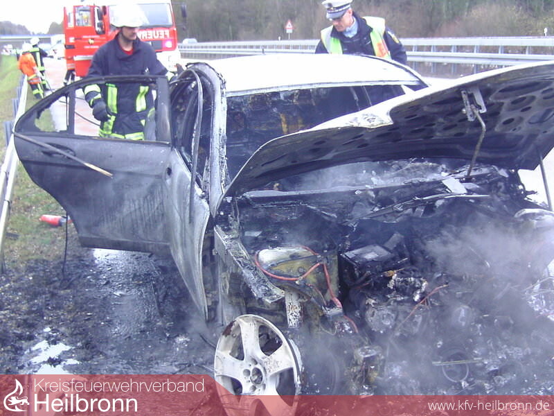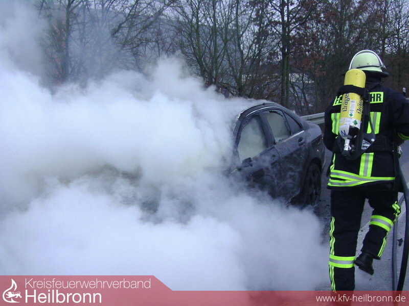Um 10.24 Uhr wurden wir zu einem PKW Brand auf der BAB A 81 Richtung Möckmühl gerufen. Ein Mercedes hatte im Bereich des Motors Feuer gefangen.