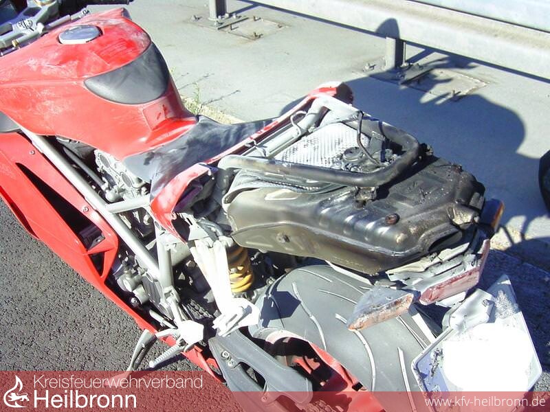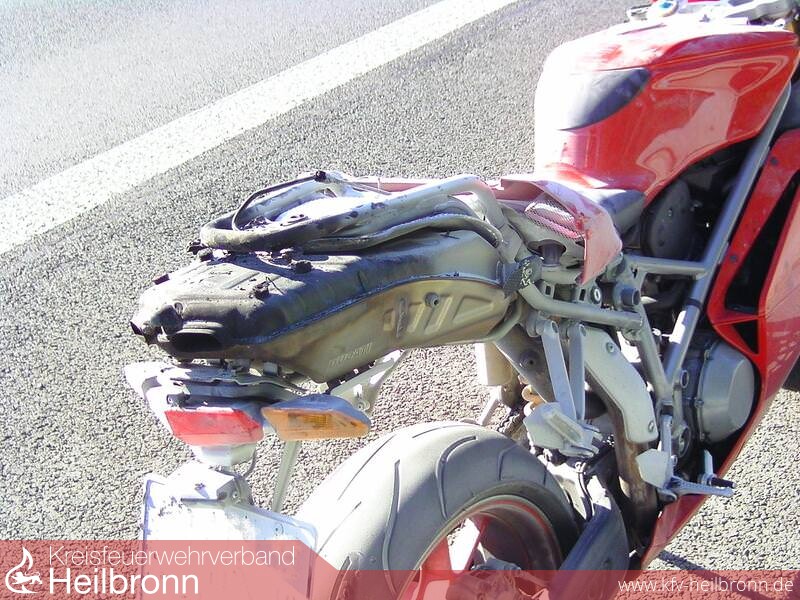 Beim Eintreffen an der Einsatzstelle stellte sich heraus, dass ein Motorrad auf Grund von Überhitzung im Bereich der Sitzbank Feuer gefangen hatte.
