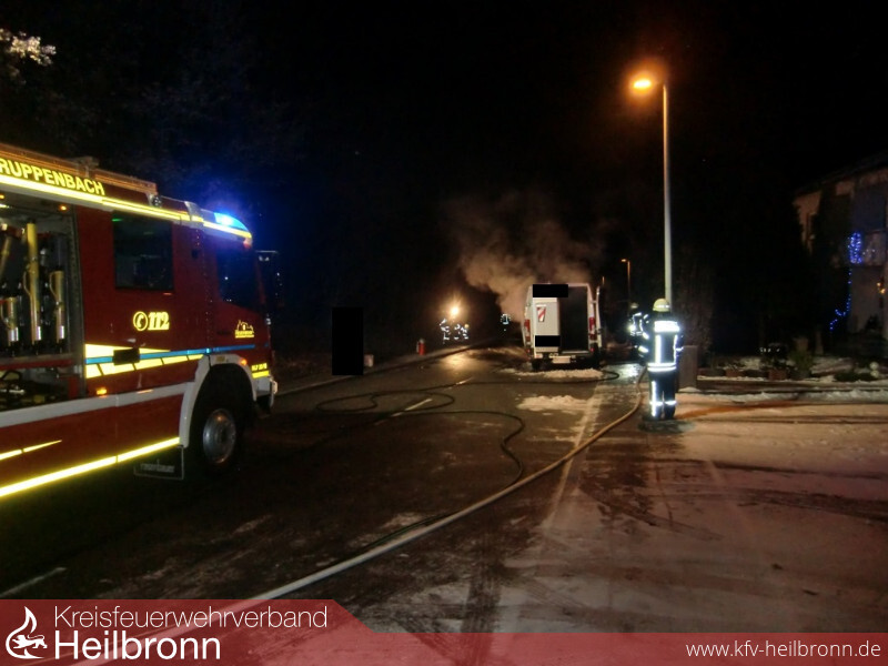 Die Feuerwehr Untergruppenbach wurde in den Ortsteil Obergruppenbach alarmiert. Hier war es zum Brand eines abgestellten Kleintransporters in der Frankenstraße gekommen.