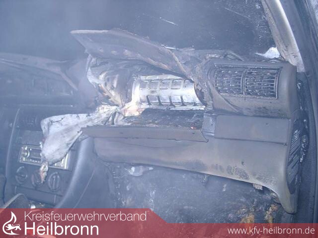 Die Abteilung Obersulm wurde zu einem PKW-Brand in Affaltrach alarmiert. Beim Eintreffen stand der Motorraum einschließlich der Vorderräder im Vollbrand. Ein Trupp unter Atemschutz hat den Brand mit dem Schnellangriff vom TLF gelöscht. Noch während der Löscharbeiten zündete der Befahrerairbag, der flüssige Kunststoff der Armaturentafel spritzte im Innenraum herum. Nach Abschluss der Löscharbeiten wurde die Einsatzstelle mit Streusalz abgestreut.