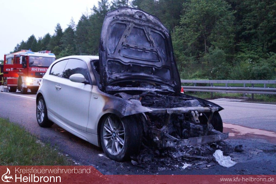 Auf Grund eines technischen Defekts brach bei dem Fahrzeug im Motorraum ein Feuer aus. Ein hinzukommender LKW Fahrer führte erste Löscharbeiten mit einem Pulverlöscher durch welche aber erfolglos blieben.