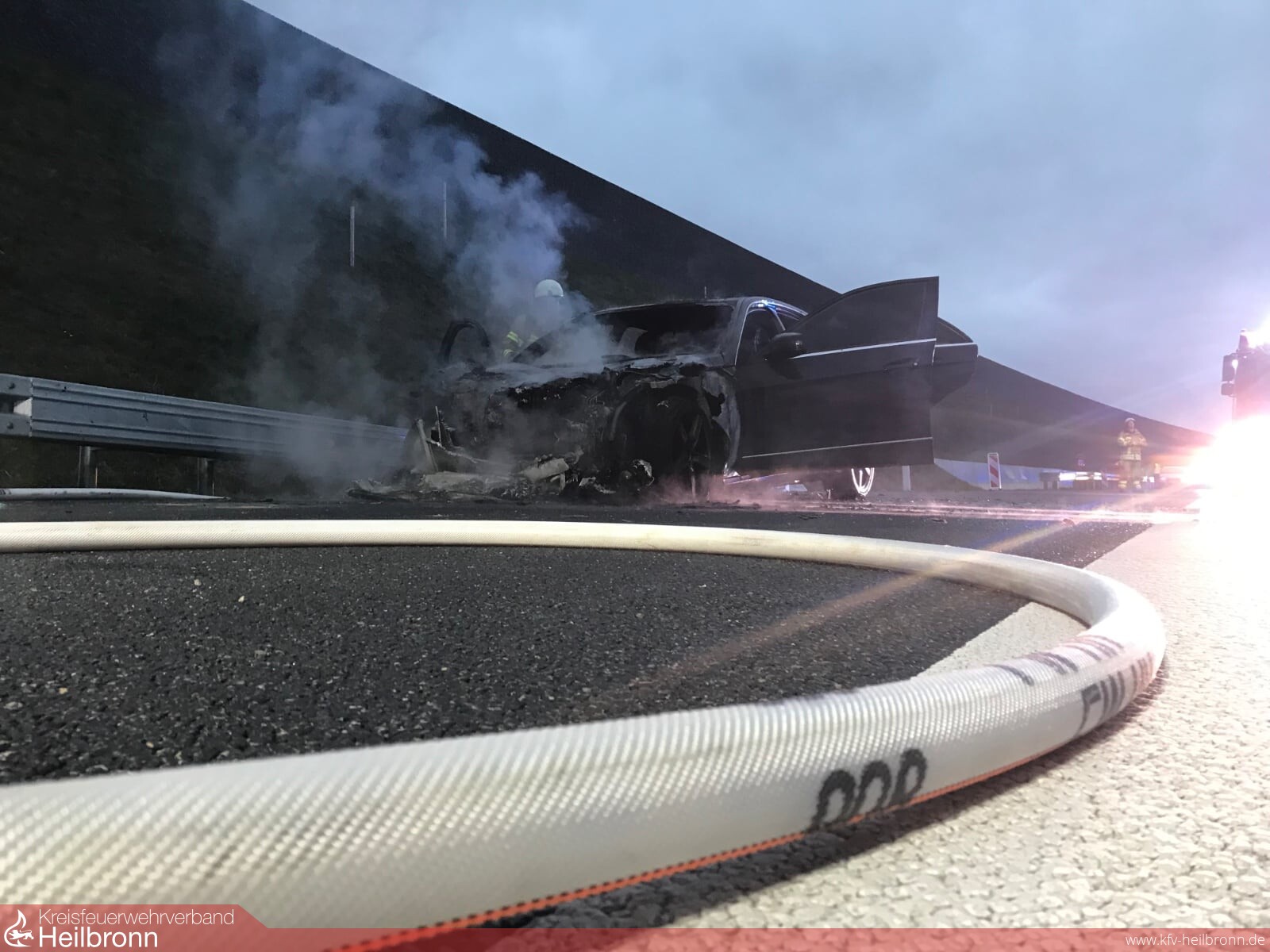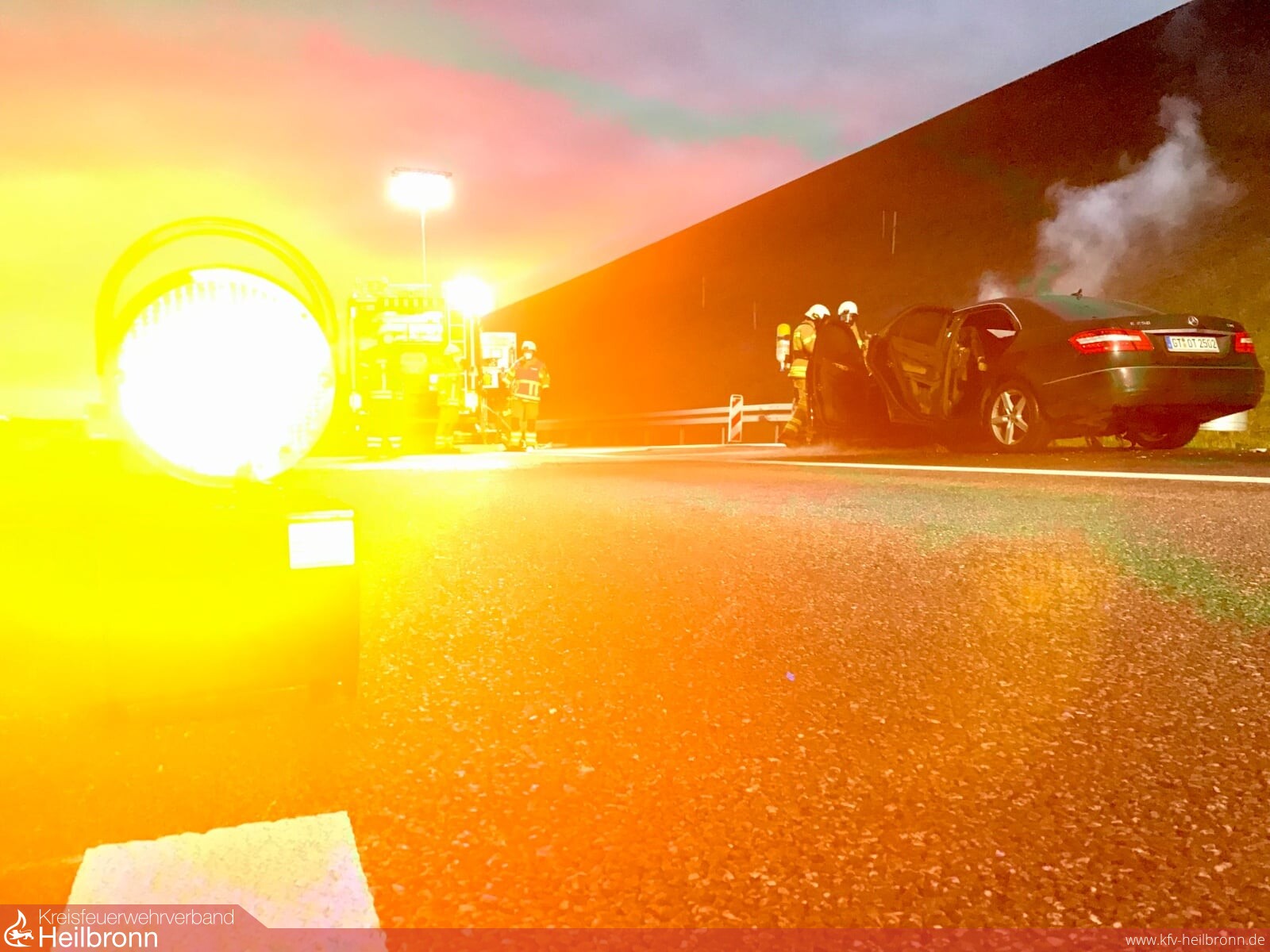 Um 17:04 Uhr wurde die Berufsfeuerwehr und die Freiwillige Feuerwehr Heilbronn Abt. Kirchhausen zu einem Pkw-Brand auf die A6 in Fahrtrichtung Nürnberg zwischen Bad Rappenau und Untereisesheim alarmiert. Beim Eintreffen an der Einsatzstelle brannte der Pkw in voller Ausdehnung. Die Kräfte der Abteilung Kirchhausen konnten den Brand schnell unter Kontrolle bringen.