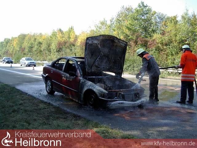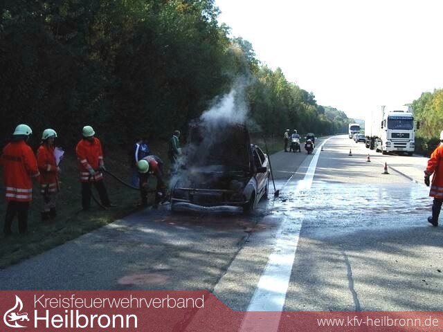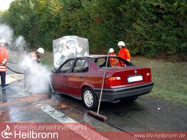 Zu einem PKW-Brand wurde die FF - Möckmühl um 12.20 Uhr gerufen. Auf der A81,bei Km 517, brannte ein 3er BMW, vermutlich durch einen technischen Defekt, im Bereich des Motorraumes.