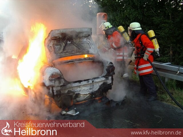 Zu einem PKW-Brand auf der BAB 81 in Fahrtrichtung Würzburg wurden die beiden Wehren aus Möckmühl und Widdern alarmiert.
