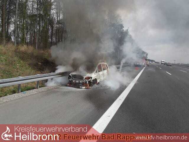 Die Abteilung Bad Rappenau wurde zu einem PKW-Brand auf die Autobahn A6, Fahrtrichtung Mannheim gerufen.