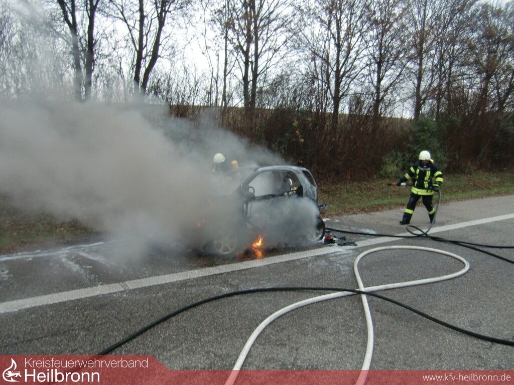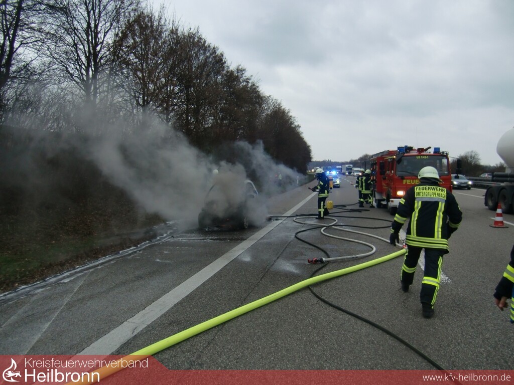 Hier war es kurz nach der Anschlussstelle Untergruppenbach zu einem PKW-Brand gekommen, der mit zwei Rohren unter Pressluftatmer abgelöscht werden konnte.