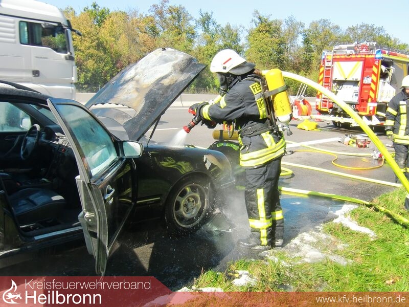 Die Feuerwehr Untergruppenbach wurde auf die BAB 81 zu einem PKW Brand, kurz vor die Anschlußstelle Weinsberg/Ellhofen, alarmiert.