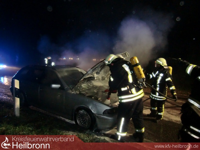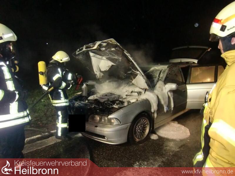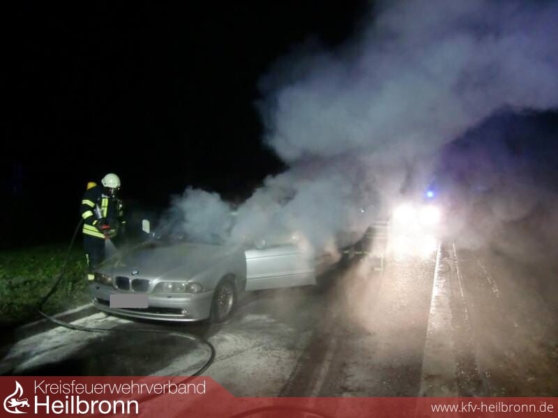 Vermutlich wegen eines technischen Defekts fing ein BMW laut Polizei am Montagabend auf der BAB A 81 Feuer und brannte komplett aus. Gegen 21 Uhr befuhr der 49-Jährige mit seinem BMW, an dem ein beladener Fahrzeuganhänger angebracht war, die Autobahn aus Richtung Stuttgart kommend in Richtung Weinsberger Kreuz. Kurz vor dem Parkplatz Grafenwald wurde er von einem anderen Autofahrer auf das Feuer aufmerksam gemacht und konnte in den Parkplatz einfahren.