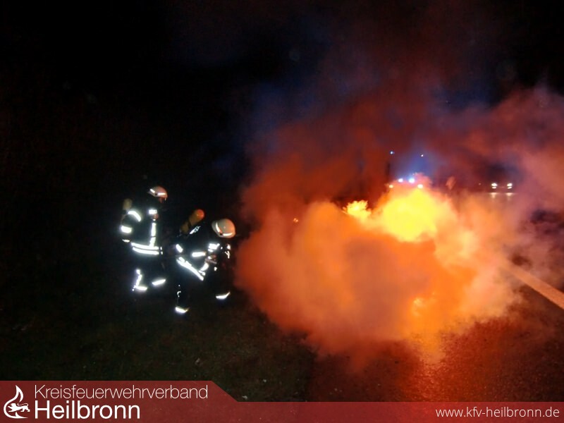 Die Feuerwehr Untergruppenbach wurde auf die BAB 81 in Fahrtrichtung Stuttgart alarmiert. Hier war es zu einem PKW Brand gekommen. Die Wehr löscht den ausgedehnt brennenden PKW mit einem Rohr unter PA ab und sicherte die Einsatzstelle.