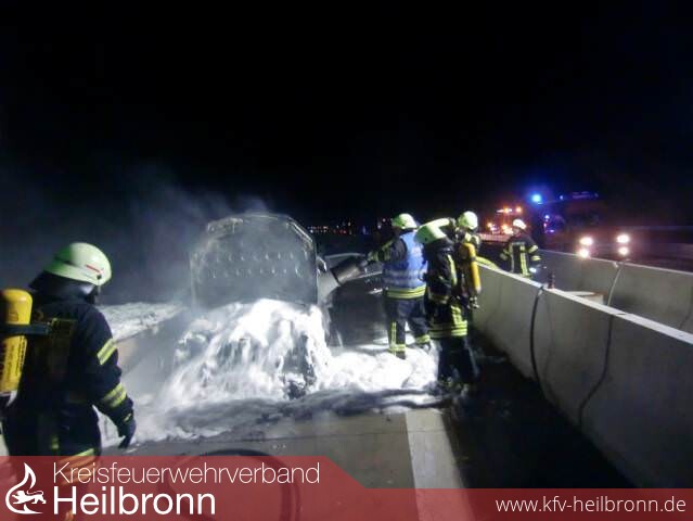 Die Feuerwehr Untergruppenbach wurde auf die BAB 81 in Fahrtrichtung Würzburg alarmiert. Hier war es im derzeitigen Baustellenbereich zu einem PKW Brand gekommen.