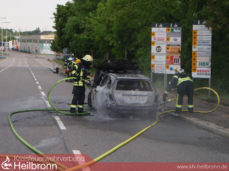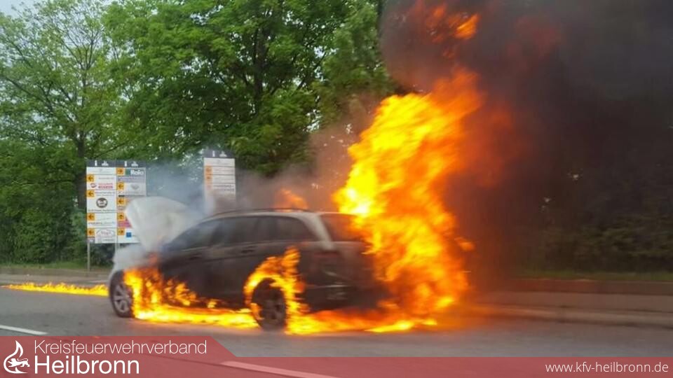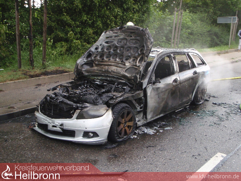 Beim Eintreffen der Einsatzkräfte vor Ort, brannte der Mercedes Kombi bereits in voller Ausdehnung.