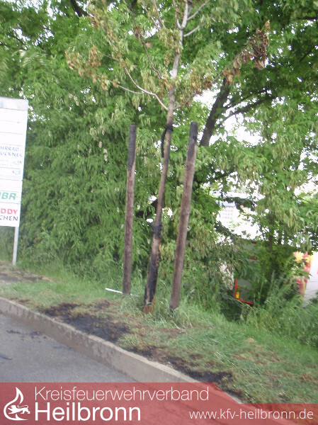 Aufgrund der enormen Hitzestrahlung wurden die angrenzende Vegetation sowie der Straßenbelag in Mitleidenschaft gezogen.