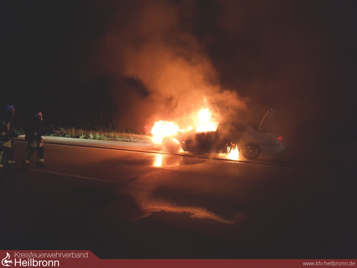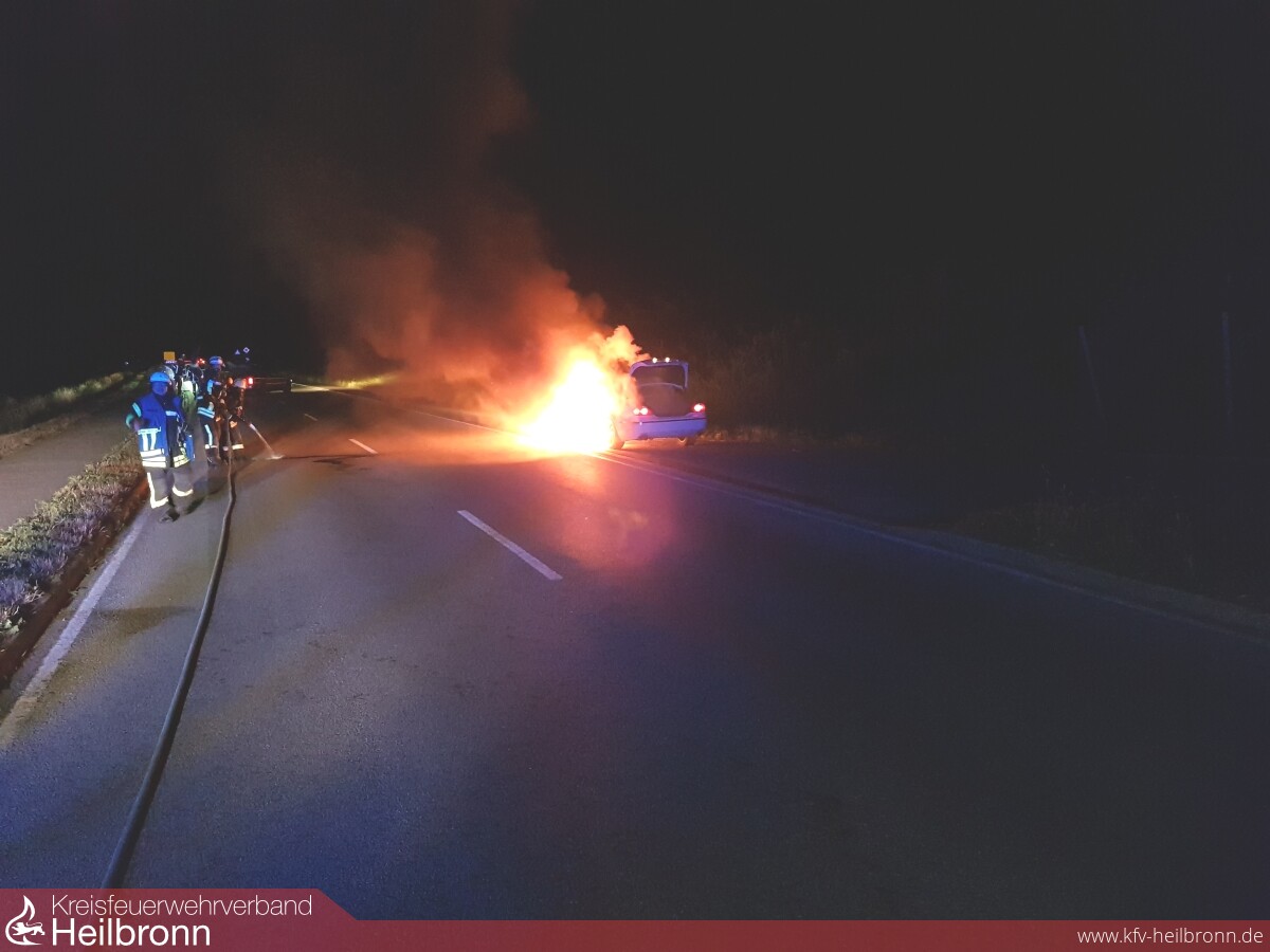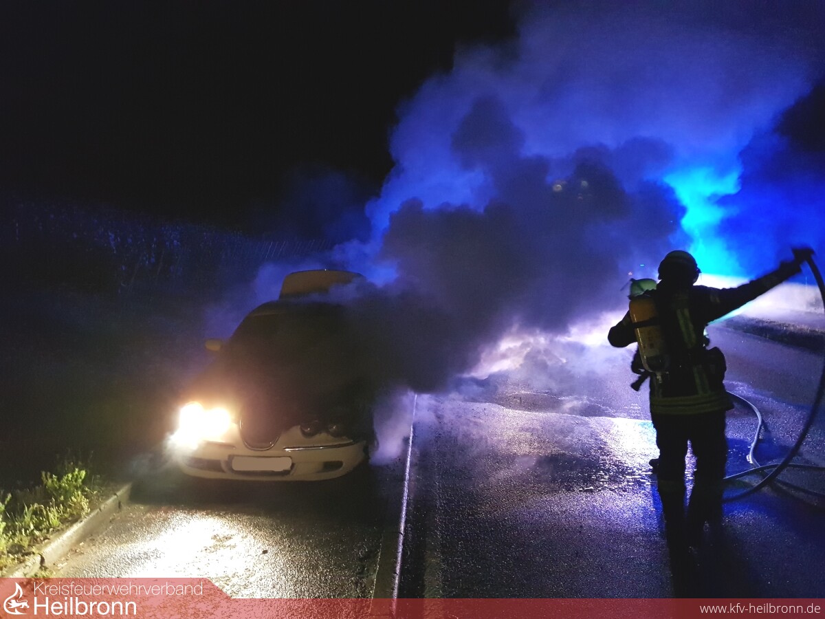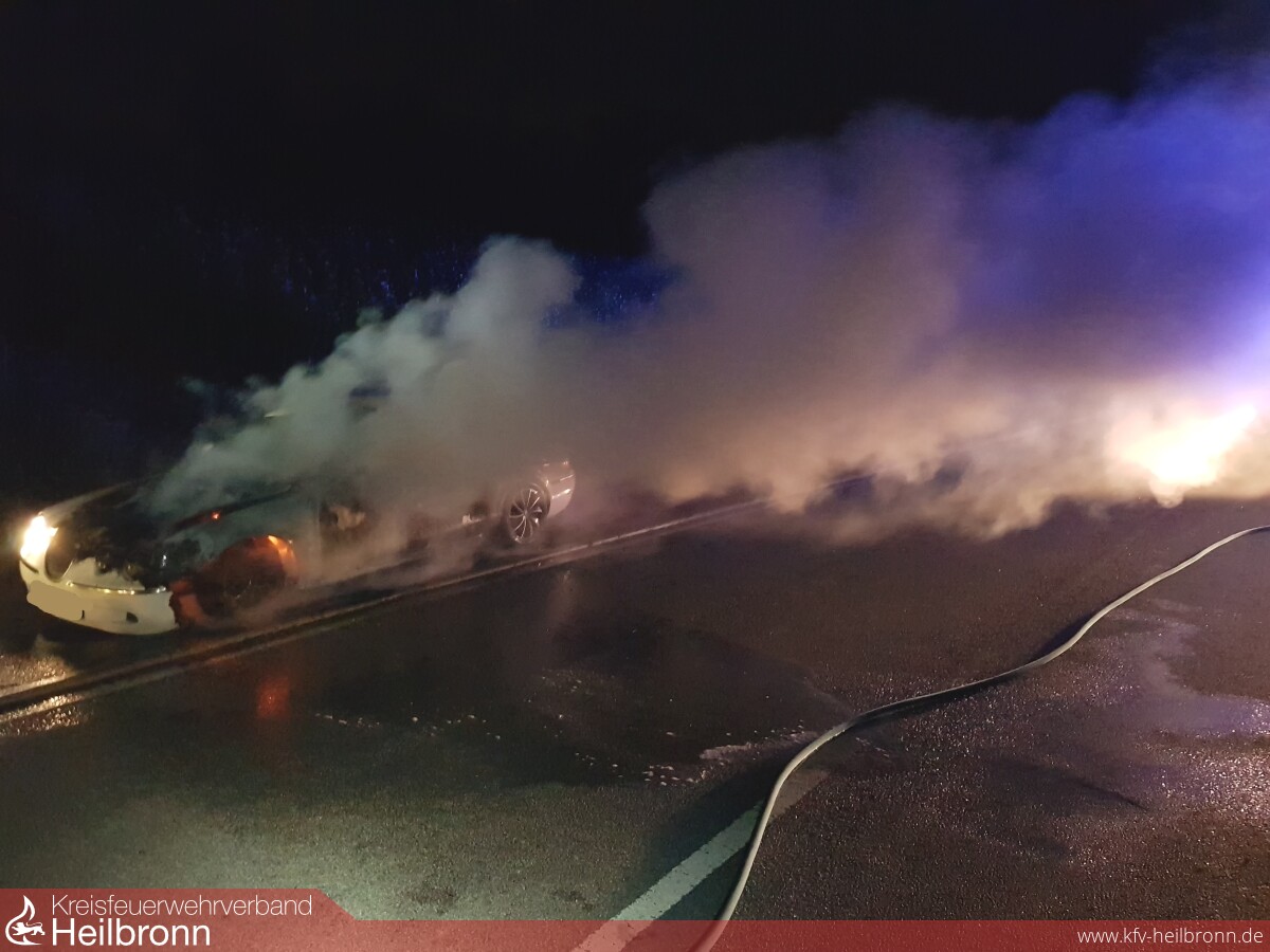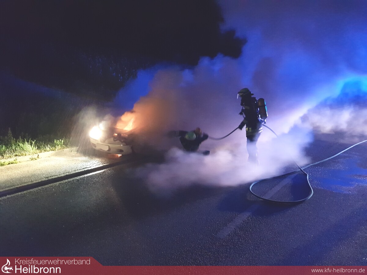 Weil ein Verkehrsteilnehmer, welcher in den Nachtstunden mit seinem PKW auf der L1103 zwischen Lauffen und Meimsheim unterwegs war, einen Schmorgeruch und im weiteren Verlauf auch Rauch im Innenraum wahrgenommen hatte, stellte dieser sein Fahrzeug am Straßenrand ab und versuchte noch mit einem kleinen Autofeuerlöscher, die zwischenzeitlich sichtbaren Flammen am PKW zu löschen.
