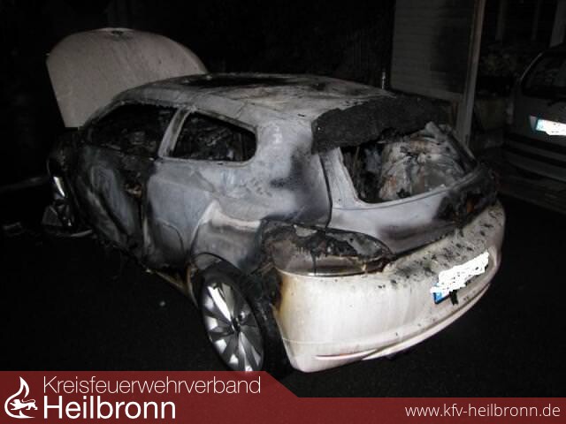 In der Degmarner Straße war ein PKW in einem Carport in Brand geraten.Bei Eintreffen stand der PKW im Vollbrand und das Feuer drohte auf den Carport und ein weiteres Fahrzeug überzugreifen.Die Brandbekämpfung und Riegelstellung wurde mit 2 C-Rohren und 1 Schaumrohr unter Atemschutz durchgeführt, somit konnte das Übergreifen des Feuers verhindert werden.