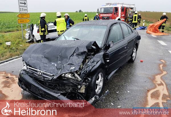 Am Donnerstag, dem 30.08.2012, um 14.50 Uhr, ereignete sich auf der L1100, zwischen Flein und Ilsfeld ein schwerer Verkehrsunfall. Der 28jährige Fahrer eines Pkw Daimler war auf der Landesstraße in Richtung Ilsfeld unterwegs, als ihm ein 79jähriger Daimlerfahrer, welcher aus Richtung Schozach kam, die Vorfahrt nahm. Es kam im Einmündungsbereich zur Kollision der beiden Fahrzeuge. Der 79Jährige wurde hierbei in seinem Fahrzeug eingeklemmt und musste schwerverletzt von der Feuerwehr herausgeschnitten werden; der 28Jährige erlitt ebenfalls schwere Verletzungen. Es entstand ein Sachschaden in Höhe von ca. 50.000 Euro. Die Landesstraße war bis 17.00 Uhr gesperrt. Die Freiwillige Feuerwehr Ilsfeld war mit 4 Fahrzeugen und 14 Feuerwehrleuten im Einsatz, die Rettungsdienste mit 2 Rettungstransportwägen und einem Notarztwagen.