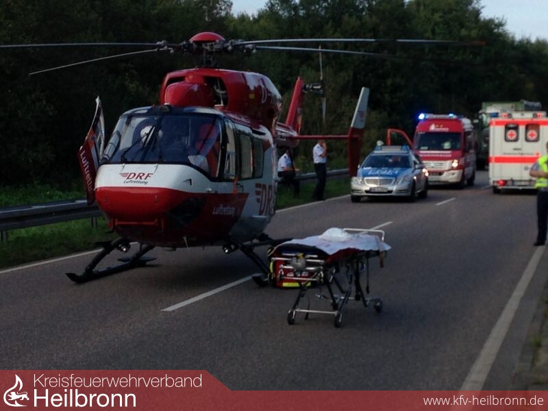 Zwei verletzte Personen und ein Sachschaden von rund 16.000 Euro sind die Folgen eines Verkehrsunfalls am Mittwoch, gegen 16.45 Uhr, auf der Bundesstraße 293 bei Eppingen. Ein 22-Jähriger hatte mit seinem Ford die Strecke in Richtung Heilbronn befahren. Kurz nach der Abfahrt Eppingen Nord kam der Autofahrer aus unbekannter Ursache auf die Gegenfahrbahn und kollidierte mit dem entgegenkommenden Lkw eines 49-Jährigen. Durch den Zusammenstoß erlitt der Pkw-Lenker schwere Verletzungen. Er musste mit einem Hubschrauber in ein Krankenhaus gebracht werden. Der Fahrer des Lastwagens zog sich bei dem Unfall leichtere Verletzungen zu. Während der Unfallaufnahme musste die B 293 voll gesperrt werden. Die Feuerwehr war mit vier Fahrzeugen und 19 Einsatzkräften vor Ort, ebenso ein Notarzt und zwei Rettungsfahrzeuge.