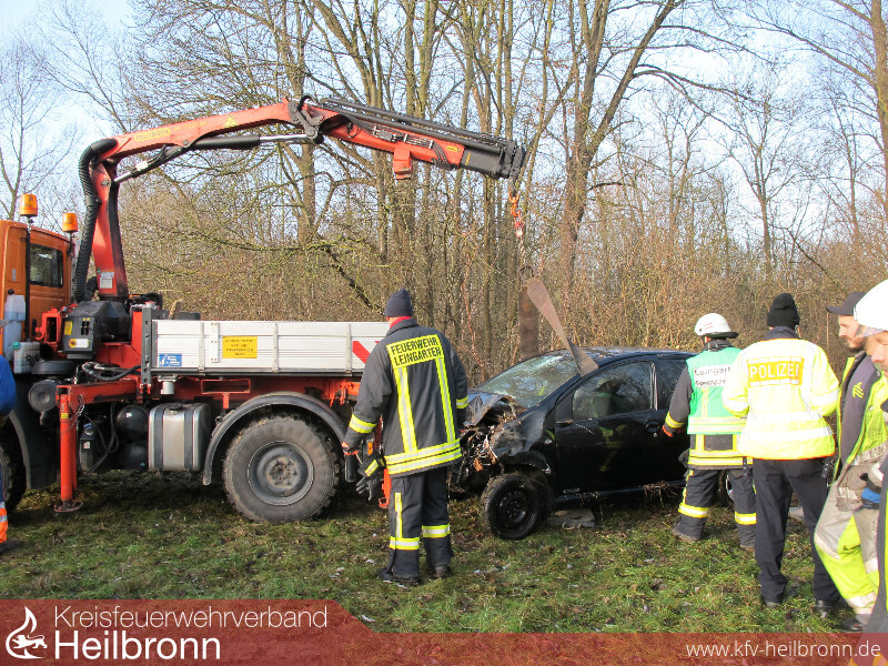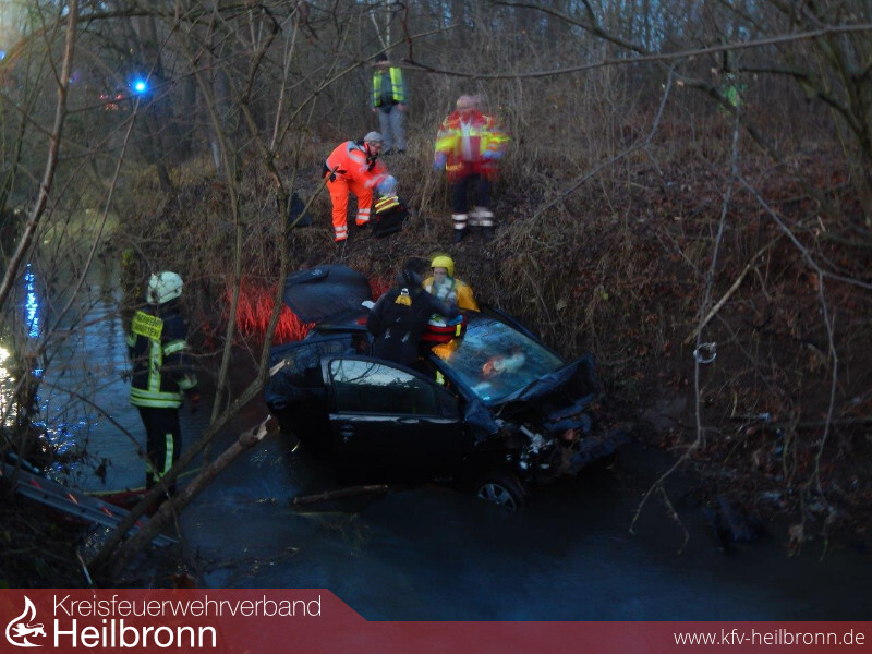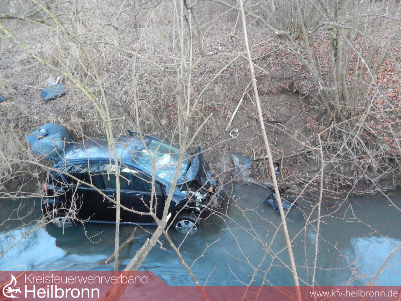 Am Morgen des 28.12.2016 fuhr ein 51-jähriger kurz nach 7:30 Uhr mit seinem Toyota auf der B293 von Heilbronn in Richtung Eppingen. Auf Höhe von Leingarten kam sein Wagen zunächst auf die linke Fahrbahnseite, wo er zwei entgegen kommende Autos streifte und anschließend nach rechts in eine Wiese einfuhr. Nach ca. 150m schanzte das Fahrzeug über das Bachbett des Leinbachs und prallte frontal auf die gegenüberliegende Böschung. Im Bach selbst kam das Fahrzeug dann zum Stehen.