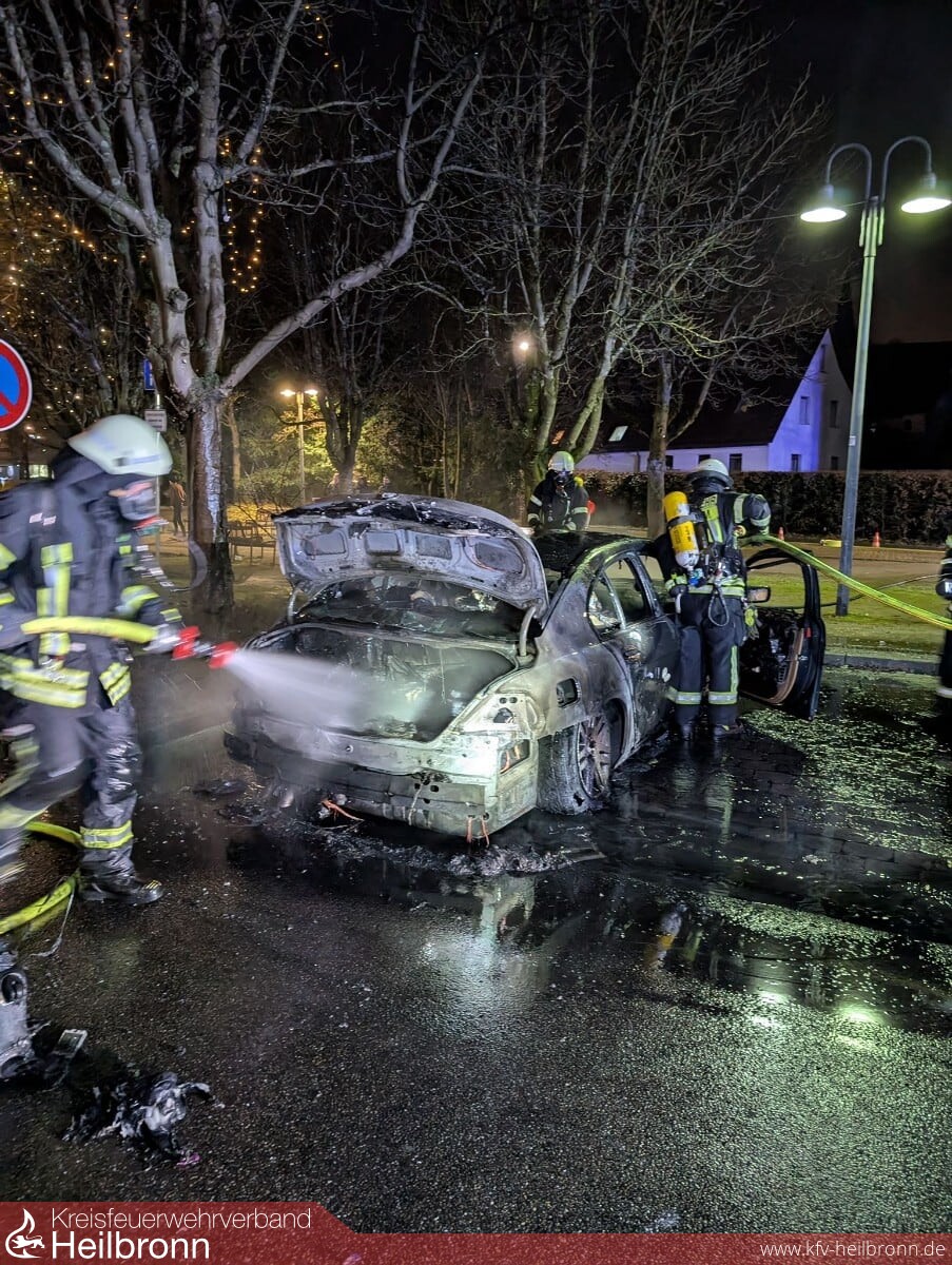 Am 15. Dezember 2024 wurde die Feuerwehr Talheim um 22:33 Uhr zu einem PKW-Brand auf den Rathausplatz alarmiert. Beim Eintreffen der Einsatzkräfte stand ein BMW in Vollbrand. Das ersteintreffende Hilfeleistungslöschfahrzeug (HLF) begann unverzüglich mit der Brandbekämpfung. Kurz darauf traf das Tanklöschfahrzeug (TLF) ein, dessen Besatzung mit einem zweiten Angriffstrupp die Löscharbeiten unterstützte. Dank des schnellen und koordinierten Einsatzes konnte der Brand rasch unter Kontrolle gebracht und eingedämmt werden. Dennoch entstand am Fahrzeug ein Totalschaden. Die Einsatzstelle wurde nach Abschluss der Maßnahmen an die Polizei übergeben.