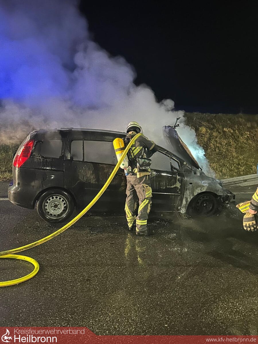 Am Freitagabend den 28. Februar, kurz vor 22 Uhr, wurde die Feuerwehr Neckarsulm zu einem Pkw-Brand auf die BAB 6, Fahrtrichtung Nürnberg, alarmiert. Beim Eintreffen konnte folgende Lage festgestellt werden: Auf einem Rastplatz stand ein Pkw auf dem Standstreifen und brannte in voller Ausdehnung. Die Ursache hierfür war unklar. Der eingesetzte Angriffstrupp löschte den Brand mit einem Rohr unter Atemschutz. Anschließend wurde die Einsatzstelle an die Polizei übergeben. Verletzt wurde bei diesem Einsatz glücklicherweise niemand. Da sich an diesem Abend aufgrund eines Übungsdienstes für Maschinisten Personal in der Feuerwache Neckarsulm befand, konnte in kürzester Zeit ausgerückt werden.