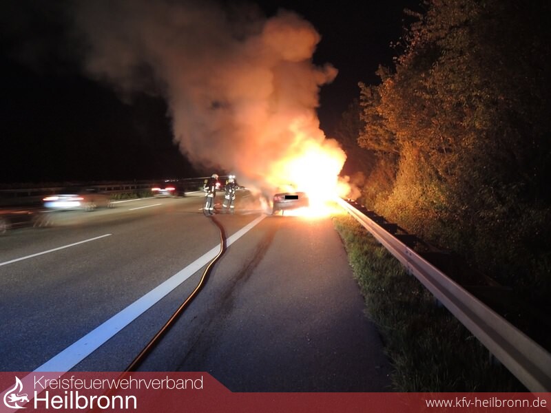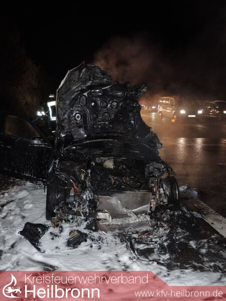 Der Löschzug Ilsfeld wurde mit dem Almartstichwort Pkw-Brand auf die BAB 81 in Fahrtrichtung Stuttgart alarmiert. Der Mercedes stand bereits beim Eintreffen des ersten Fahrzeuges der Feuerwehr Ilsfeld in Vollbrand. Der Brand wurde von einen Trupp unter Atemschutz über den Schnellangriff mit Schaum abgelöscht. Die Feuerwehr musste die Einsatzstelle noch bis zur Verladung des Pkws auf den Abschlepper absichern.