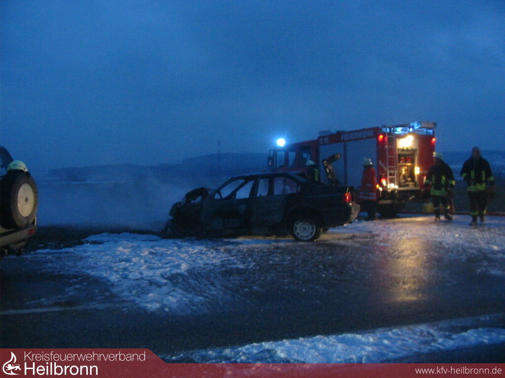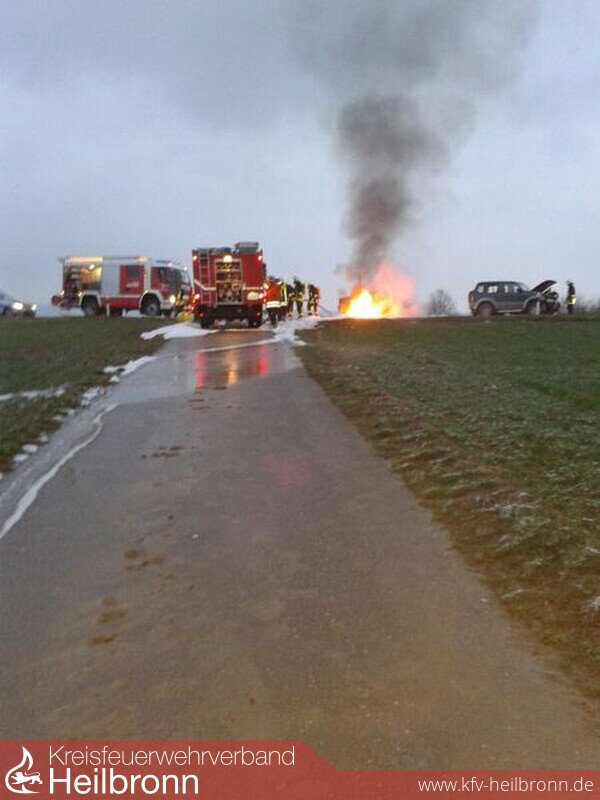 Durch einen Verkehrsunfall auf der L 1088 zwischen Langenbrettach und Öhringen auf der Höhe Flürle kam es am 13.03.13 durch einen Zusammenstoß zweier Fahrzeuge zu einem Fahrzeugbrand. Beide Fahrzeugführer konnten ihr Fahrzeug verlassen. Beim Eintreffen der Feuerwehr stand ein Fahrzeug in Vollbrand.