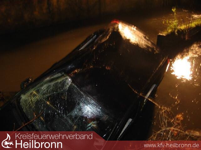 Ein 22jähriger männlicher Autofahrer fuhr unter der Beeinflussung von 1,3 Promille am Sonntagmorgen in die Zaber. Er und seine beiden 20jährigen Mitfahrer wurden leicht verletzt.
