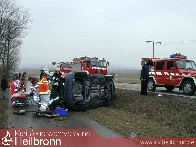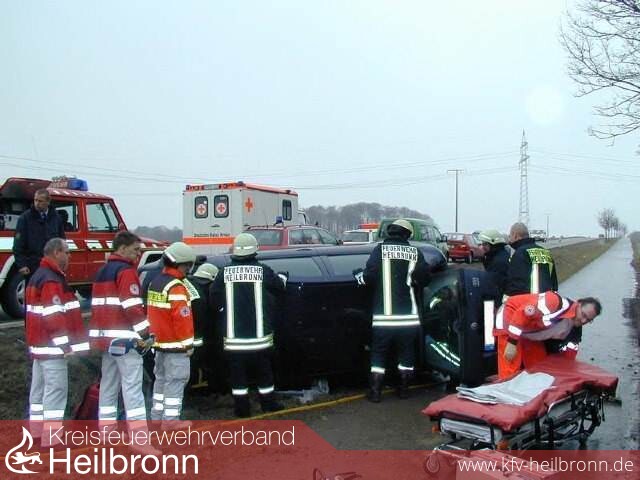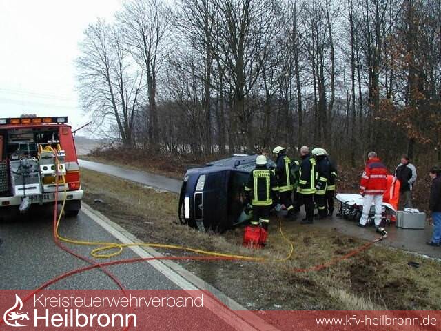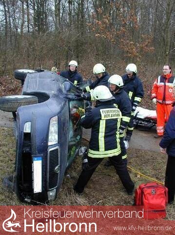 Aus bisher nicht ermittelten Gründen kam eine Pkw-Fahrerin auf der Bundesstraße 39 zwischen Heilbronn-Frankenbach und Kirchhausen von der Fahrbahn ab und überschlug sich. Das Fahrzeug blieb im Straßengraben auf der Seite liegen. Alle Türen an dem Fahrzeug waren verriegelt und ließen sich nicht mehr öffnen, so dass die verletzte Fahrerin in dem Fahrzeug eingeschlossen war.