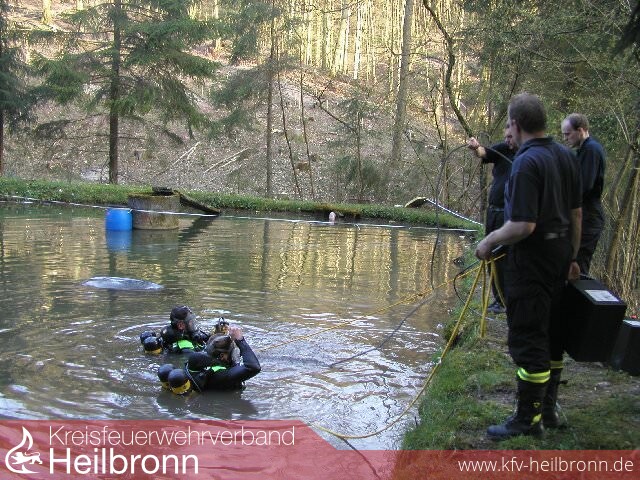 Die örtliche Feuerwehr forderte die Feuerwehr Heilbronn zur Bergung des Wagens an. Nach dem zwei Taucher ein Stahlseil an dem Fahrzeug angeschlagen hatten, konnte es mit der maschinellen Zugeinrichtung des Rüstwagens an Land gezogen werden.