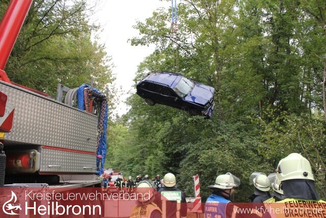 Der zur Bergung des Unfallfahrzeuges angeforderte Kran der Berufsfeuerwehr verbrachte das Unfallfahrzeug auf die Fahrbahn, wo dieses dann von einem Abschleppunternehmen aufgenommen wurde. Der unter diesem Einsatzstichwort mit alarmierte Wasserrettungszug der BF Heilbronn musste die Einsatzstelle nicht anfahren.