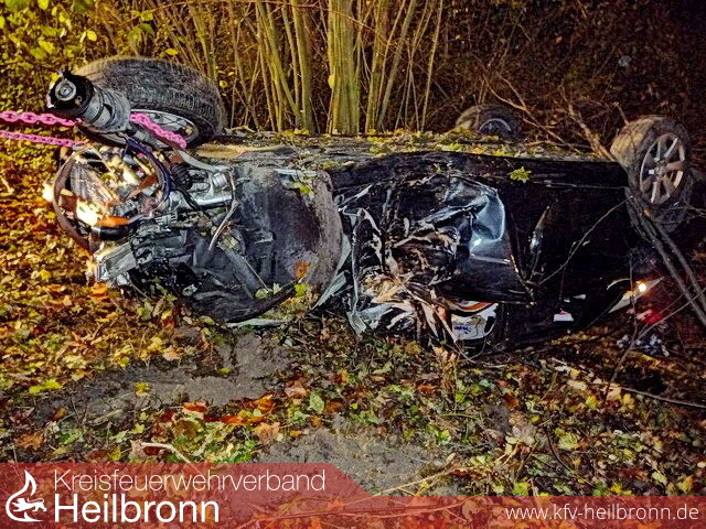 Zu Verkehrssicherungsmaßnahmen nach einem Verkehrsunfall wurde die Abteilung Möckmühl auf die L 1095 gerufen. Dort kam aus bisher ungeklärter Ursache ein PKW aus Fahrtrichtung Roigheim von der Fahrbahn ab und schleuderte eine ca. 3 Meter tiefe Böschung hinab.