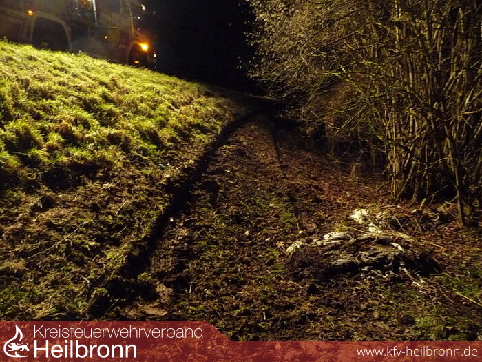 Weiterhin sollte der PKW mit der Seilwinde des Rüstwagen auf die Straße gezogen werden. Nachdem jedoch die Feuerwehr den auf der Seite liegenden PKW wieder auf die Räder gestellt hatte, wurde festgestellt, dass das Fahrzeug noch eingeschränkt fahrtauglich ist. Nach Absprache mit der Polizei wurde der PKW über einen Feldweg auf das naheliegende Feuerwehrgelände gebracht.