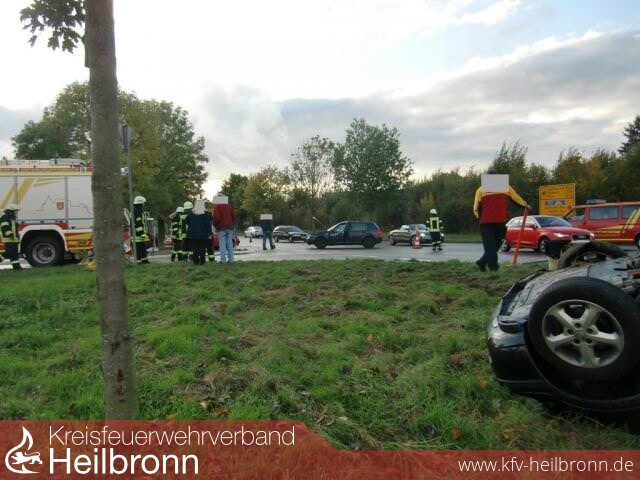 Die Feuerwehr Untergruppenbach wurde zu einem Verkehrsunfall mit einer eingeklemmten Person in Richtung Waldkreuzung Flein alarmiert.