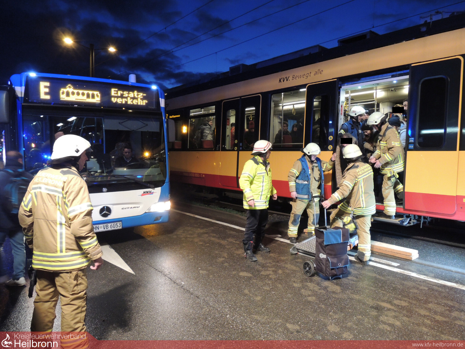 Der Fahrer der Stadtbahn sowie ein Fahrgast erlitten bei dem Unfall leichte Verletzungen.