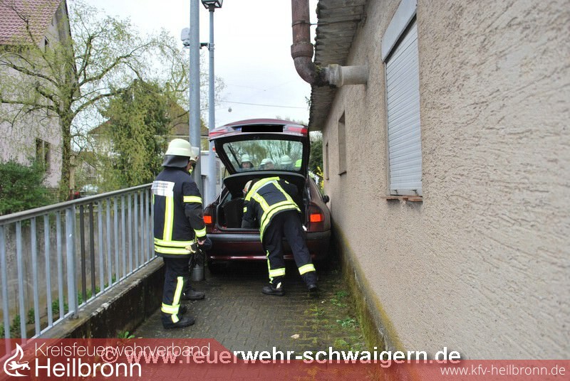 Der Fahrer eines PKW war mit seinem Fahrzeug auf den entlang des Leinbachs verlaufenden Fußweg zwischen der Zeppelin- und Theodor-Heuß-Straße eingefahren. Der Weg verengt sich allerdings zunehmend, so dass sich das Fahrzeug irgendwann verkeilte.