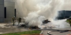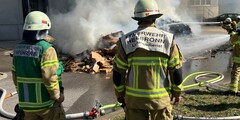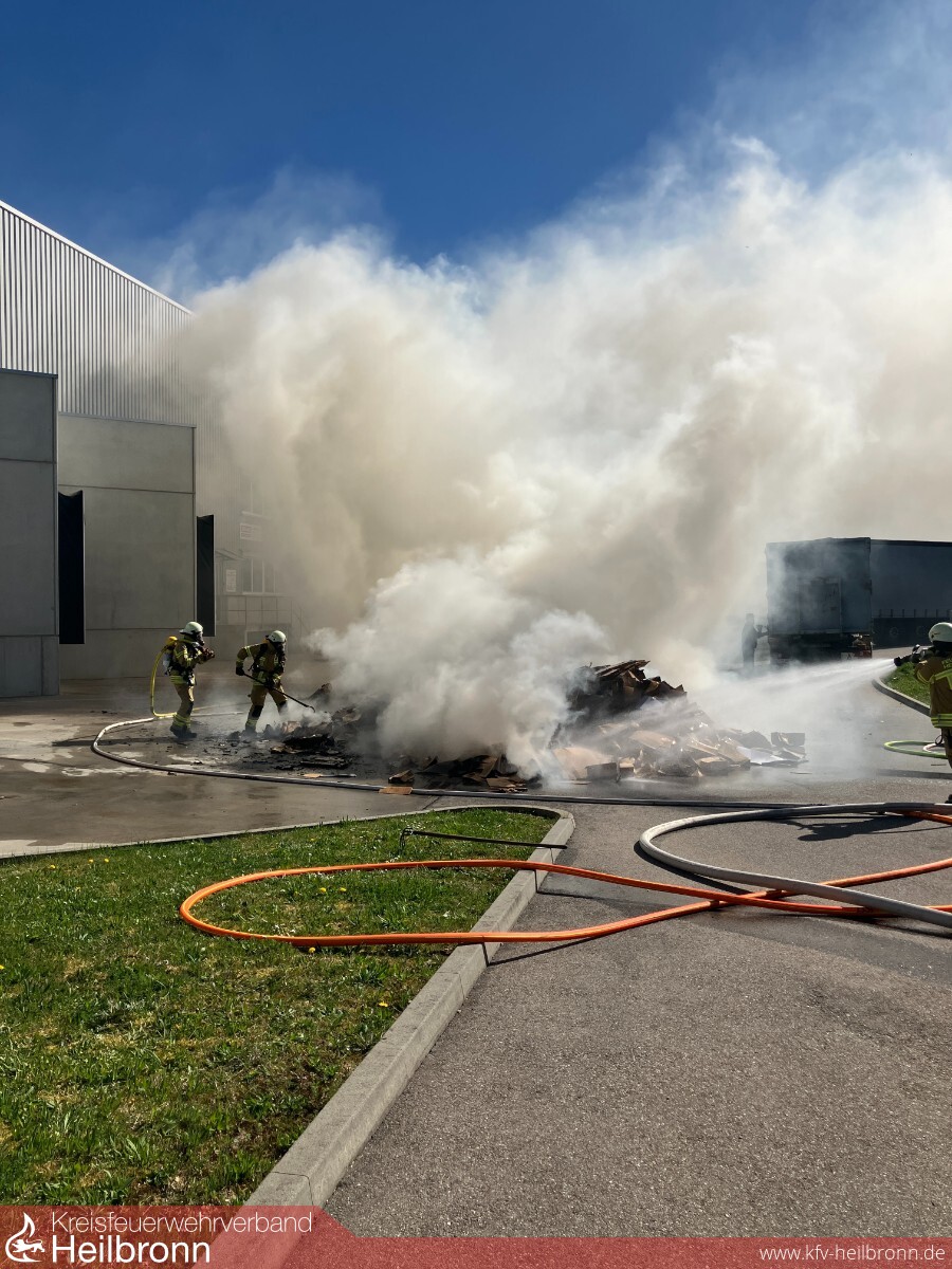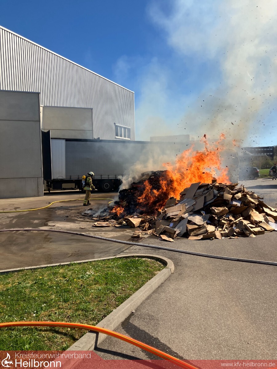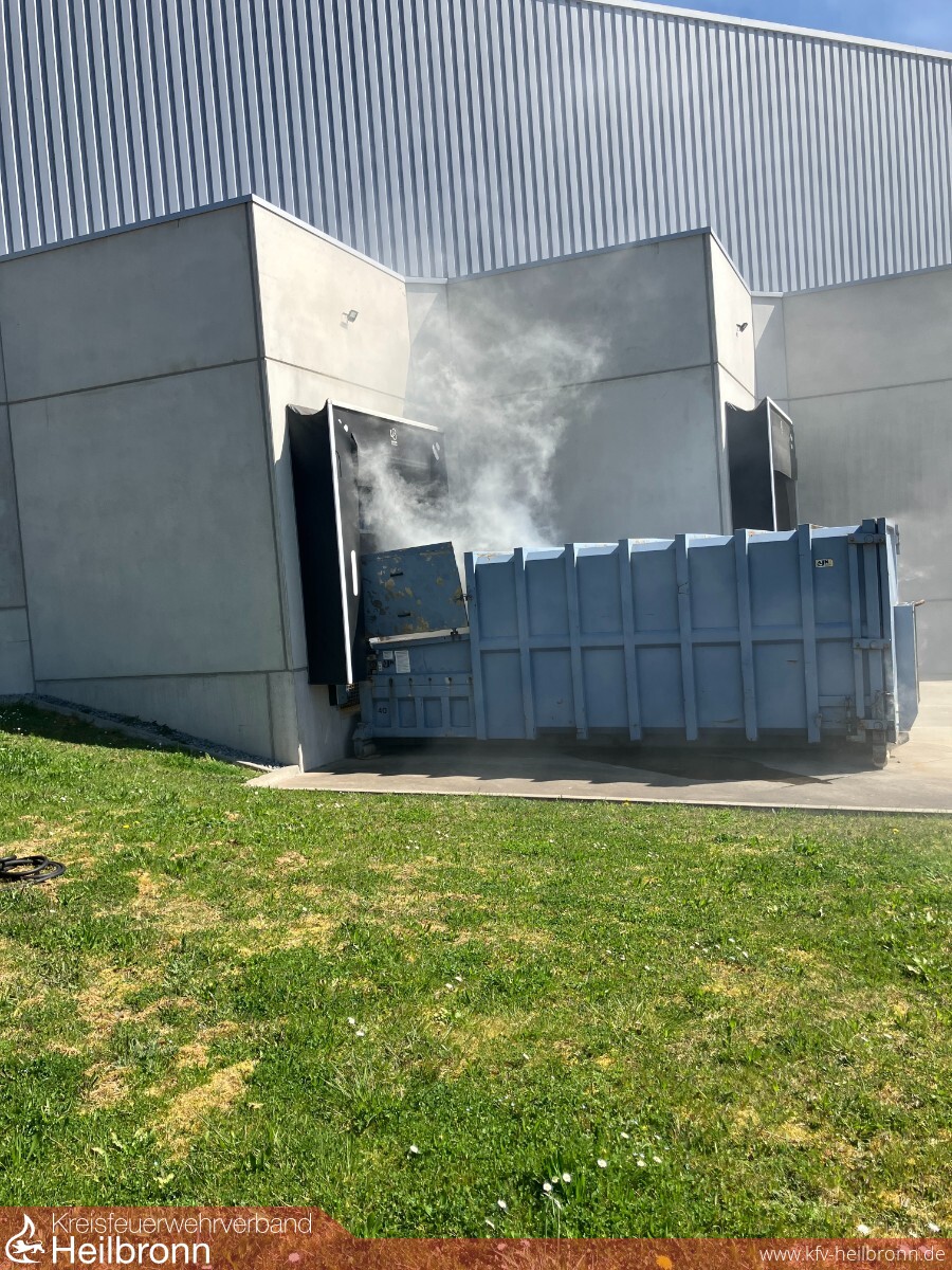 Presscontainer brennt an Lagerhalle