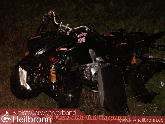 Dort konnte schließlich ein verunfalltes Quad im angrenzenden Feld gefunden werden.