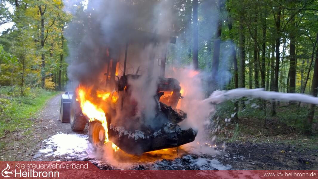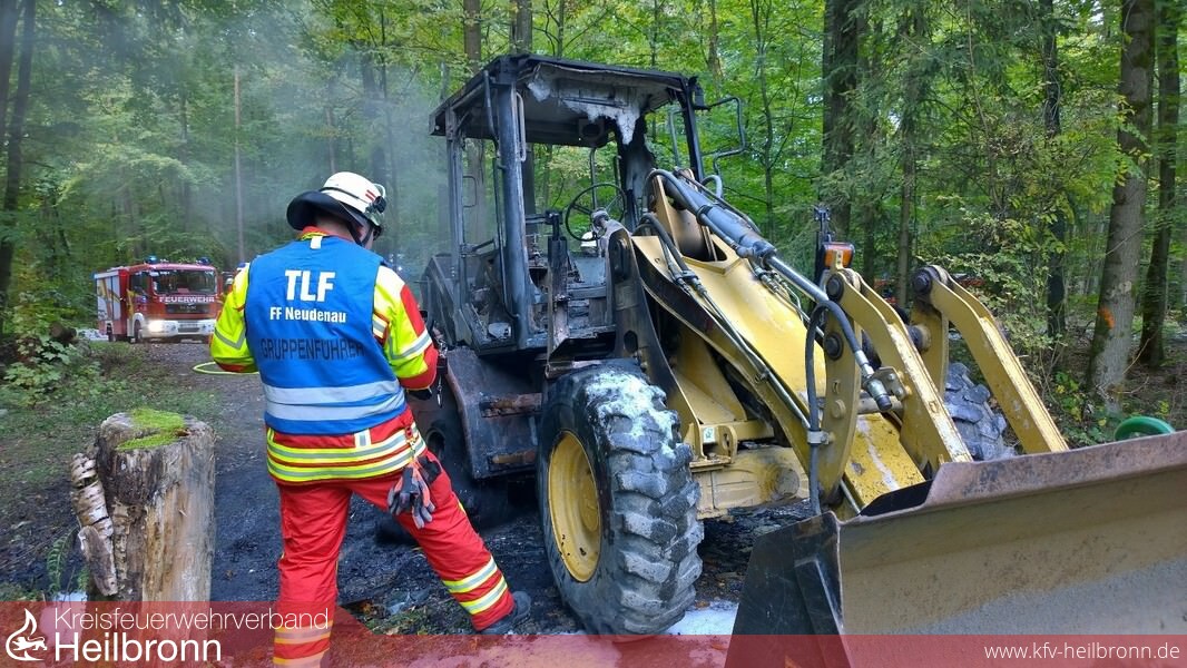 Wegen eines brennenden Radladers Richtung Reichertshausen wurden die Einsatzabteilungen (EA) Siglingen und Neudenau alarmiert. Der Radlader wurde mit zwei C-Rohren unter Vornahme von Schaum abgelöscht und der Revierförster verständigt. Der Waldweg wurde durch den Bauhof abgesperrt. Um die Beseitigung des Radlader kümmert sich die Eigentümerfirma selbst.