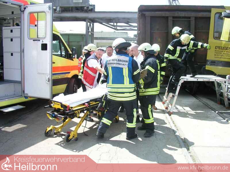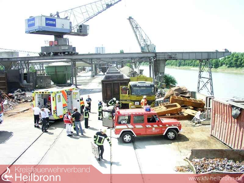 Am Freitag wurde der Integrierten Leitstelle ein Verkehrsunfall auf einem Betriebsgelände in der Heilbronner Hafenstraße gemeldet.